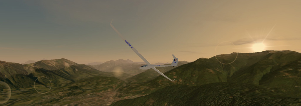 J'ai essayé hier soir en partie le vol sur Provence-Oisans qui vous sera proposé samedi 7/04 (280 km en 18m) notamment pour voir si on avait suffisamment de visi car ça sera un départ matinal. La scène a un superbe rendu au soleil levant et je n'ai pas pu m'empêcher de prendre quelques screens